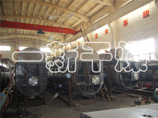 ??濕物料從離心機出來后直接進入真空耙式干燥機,物料在攪拌漿的作用下勻速往前運動。主機夾套通入蒸汽加熱。熱量由主機內(nèi)壁傳遞給腔內(nèi)的物料,濕物料吸收了熱量后迅速進行熱質(zhì)交換,溶劑迅速蒸發(fā)出來,由頂上的真空管抽出去,夾套傳入的熱量主要用于: