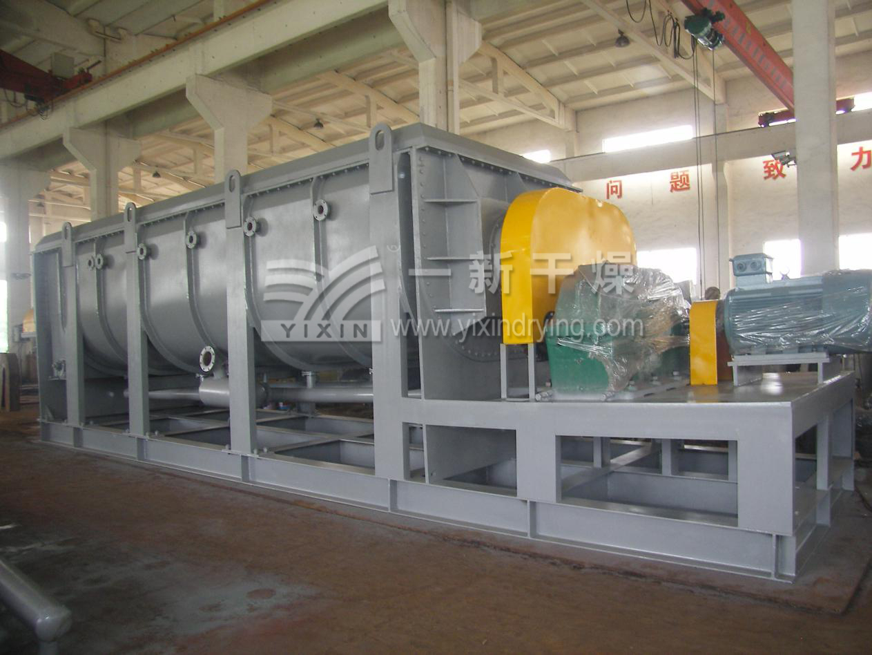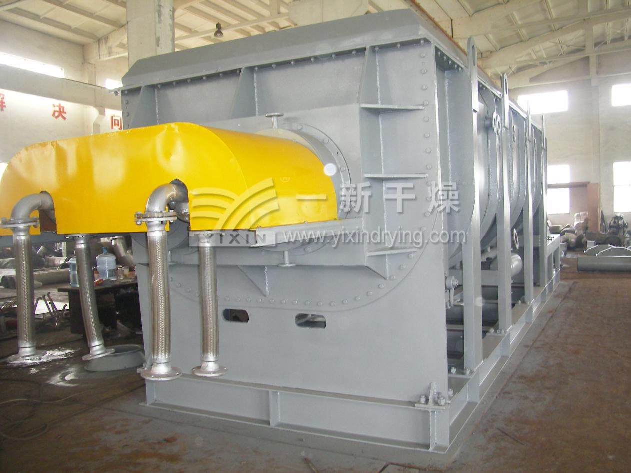 ??在槳葉及夾套通入熱介質加熱的同時,出料口上部同時進行抽濕,這樣大大增加了設備的干燥強度。蒸發出來的水份由抽濕風機帶出干燥機。