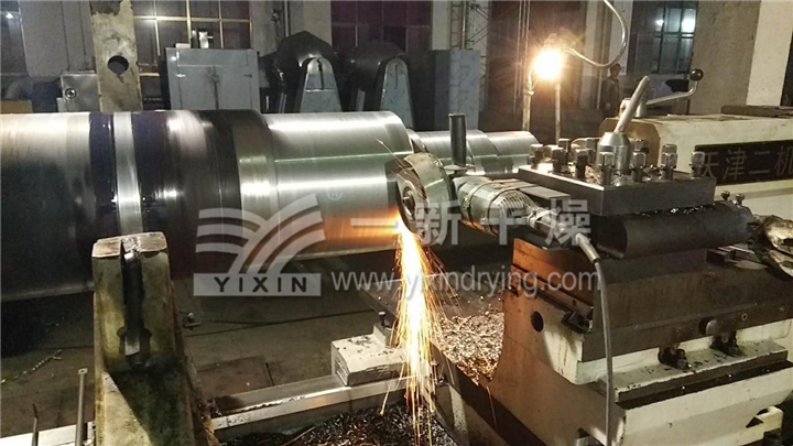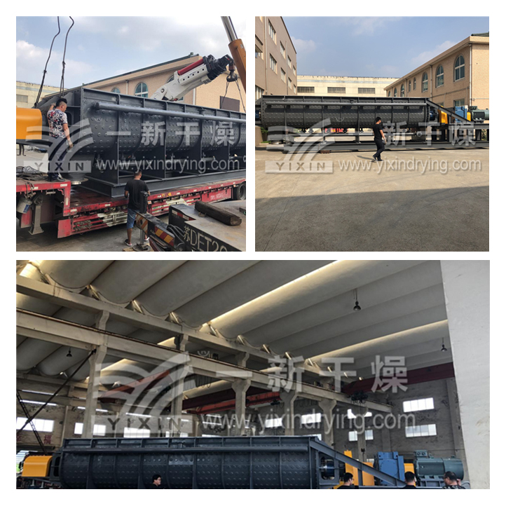 ??干燥機以蒸汽、熱水或導熱油作為加熱介質,軸端裝有熱介質導入導出的旋轉接頭。加熱介質分為兩路,分別進入干燥機殼體夾套和槳葉軸內腔,將器身和槳葉軸同時加熱,以傳導加熱的方式對物料進行加熱干燥。物料連續送入干燥機加料口,物料進入器身后,通過槳葉的轉動使物料翻轉、攪拌,不斷更新加熱界面,與器身和槳葉接觸,被充分加熱,使物料所含的表面水分蒸發。同時,物料隨槳葉軸的旋轉成螺旋軌跡向出料口方向輸送,在輸送中繼續攪拌,使物料中滲出的水分繼續蒸發。然后,干燥均勻的合格產品由出料口排出。