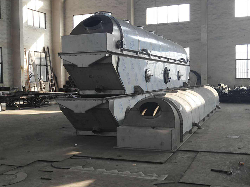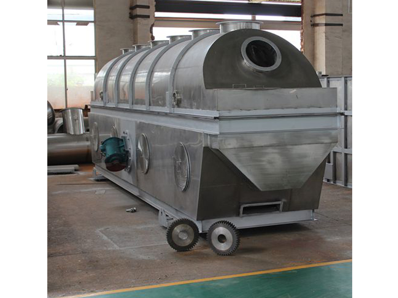 物料自進料口進入機內, 在振動力作用下, 物料沿水平方向拋擲向前連續運動,熱風向上穿過流化床同濕料換熱后, 濕空氣經旋風分離器除塵后由排風口排出, 干燥物料由排料口排出。