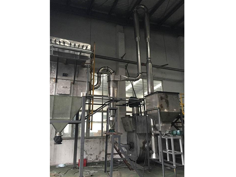 上述這類物料具有特殊性:比重輕,加料難,易燃,易爆。針對(duì)此情況,我公司技術(shù)部門開發(fā)研制的新型氣流干燥機(jī),在原氣流干燥機(jī)的基礎(chǔ)上改進(jìn)了加料形式,解決了“架橋”現(xiàn)象。創(chuàng)新改進(jìn)了旋風(fēng)分離器,解決了物料翻滾不出料的現(xiàn)象。系統(tǒng)集成,控制先進(jìn),超溫報(bào)警連鎖關(guān)閉熱源,有效解決了溫度過高引起的燃燒爆炸問題。